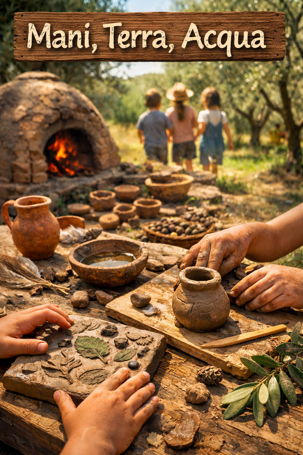 Un laboratorio creativo per scoprire la magia dell’argilla. I bambini sperimentano segni, impronte e forme naturali, realizzando un piccolo manufatto ispirato agli antichi orci per l’olio. Un’esperienza sensoriale tra natura, manualità e memoria del territorio.